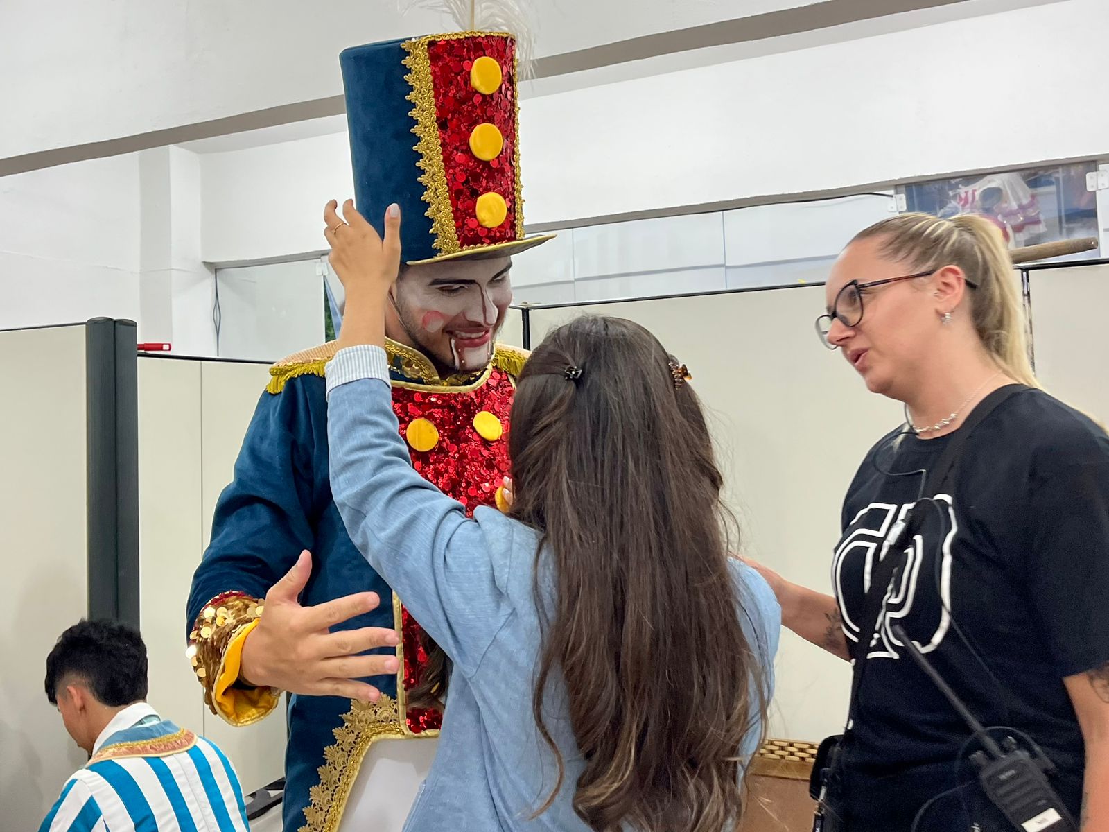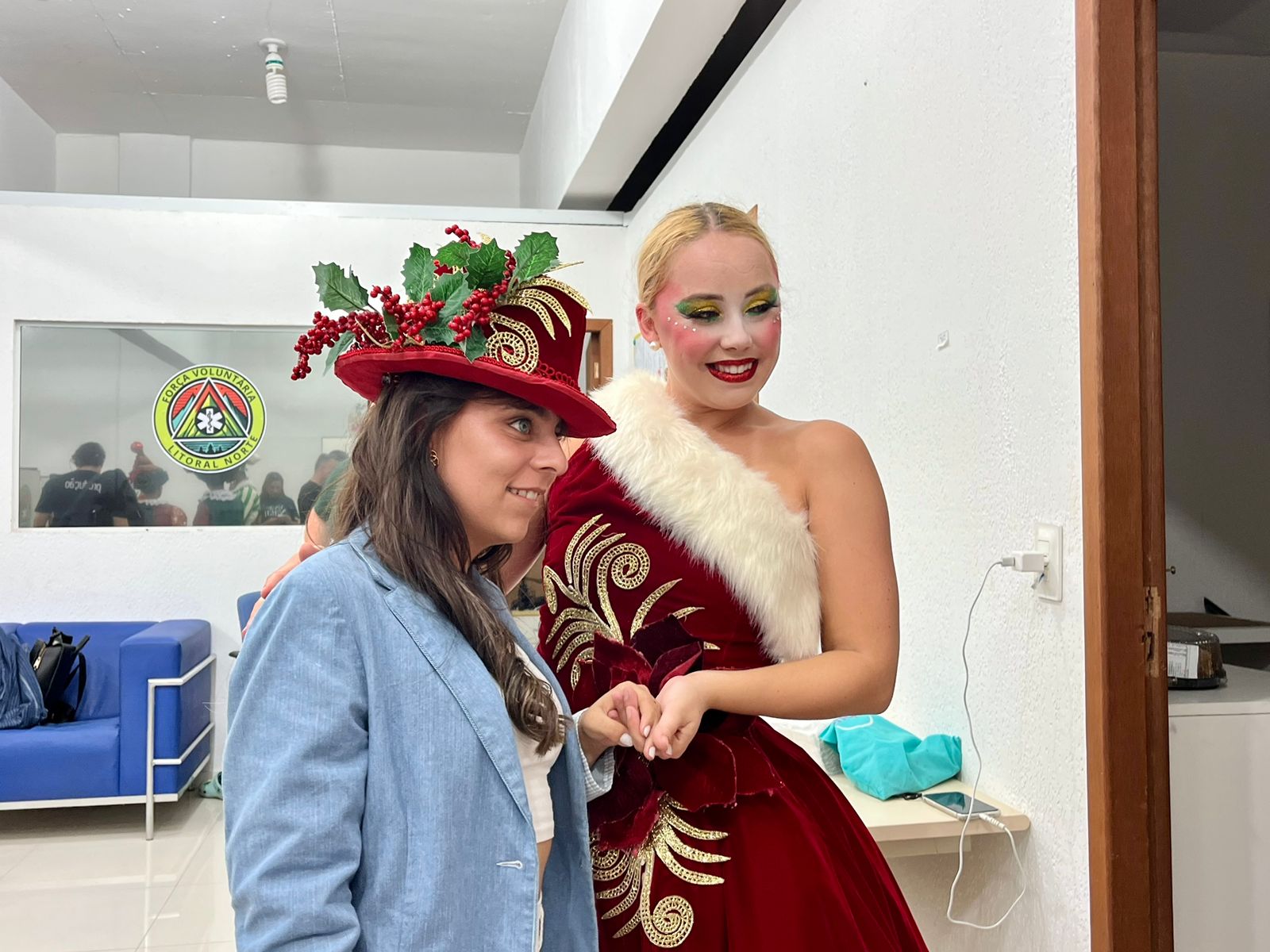 Para Mariana, conhecer os bastidores foi algo marcante, assim como interagir com aqueles que fazem os desfiles acontecerem. “Eu adorei conhecer essas pessoas maravilhosas e rever outras que eu já conhecia quando fiz aula de balé. É a primeira vez que vou acompanhar o desfile de Natal aqui de Balneário Camboriú. Os figurinos, achei super legais porque tem lantejoulas e bastante coisa para tocar, assim como os chapéus. Eu adorei cada um deles”, disse.