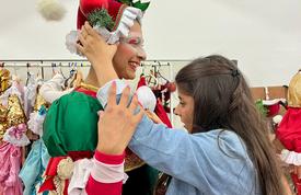 Jovem com deficiência visual conhece bastidores do desfile de Natal em BC