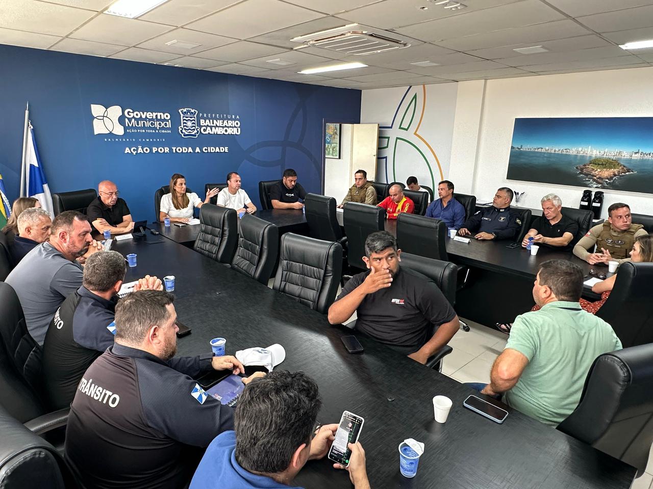 Nesta segunda-feira (29), na Prefeitura de Balneário Camboriú, foram definidos os últimos ajustes para o trabalho integrado das forças de segurança municipal e estadual durante a festa de Revéillon na cidade – uma das maiores do Brasil. Mais de um milhão de pessoas - entre moradores e visitantes - são esperadas para prestigiar a queima de fogos na Praia Central.