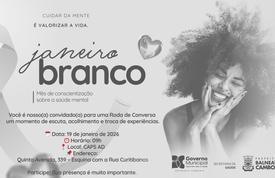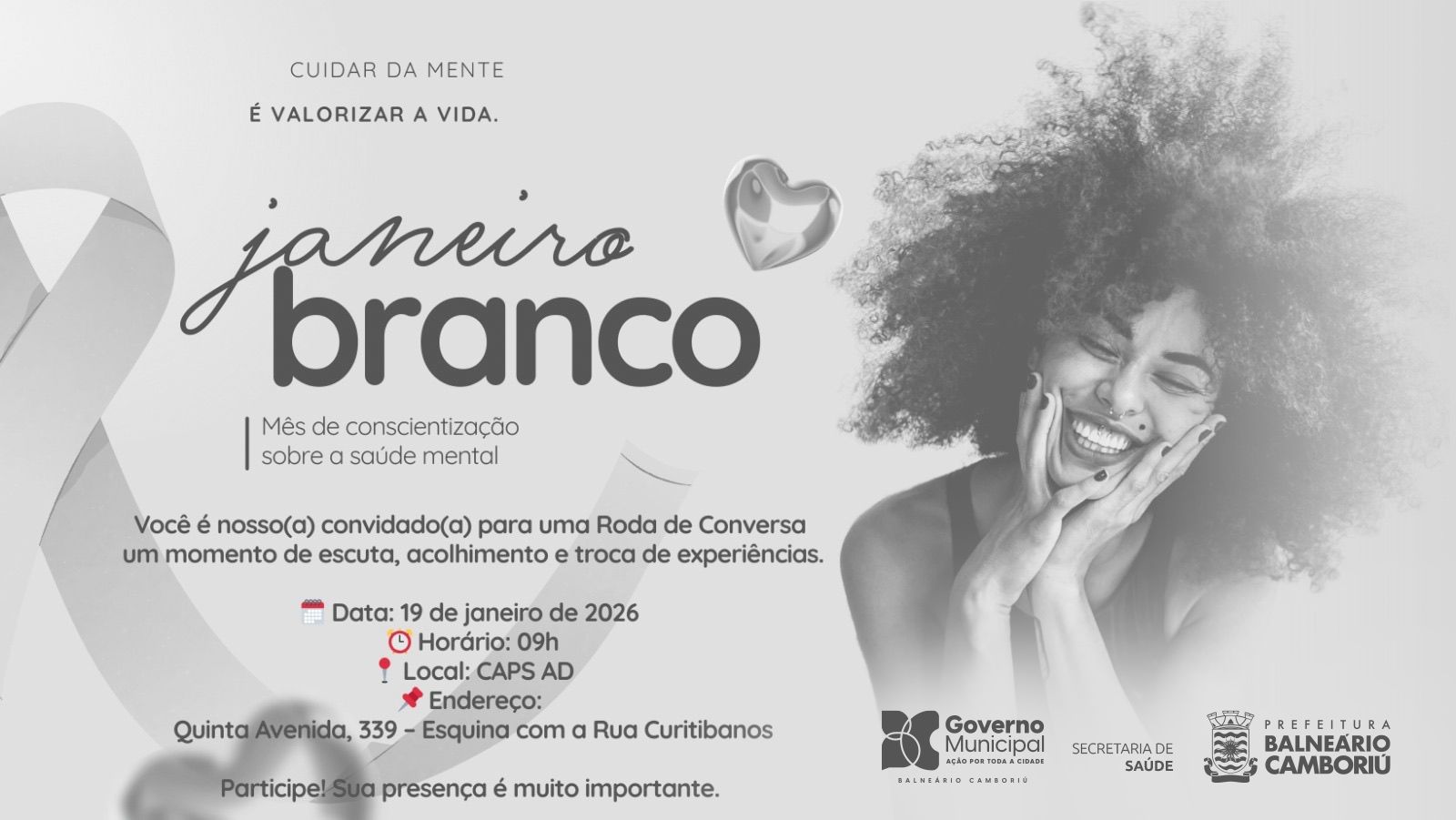 A Secretaria de Saúde de Balneário Camboriú realiza na segunda-feira (19) uma roda de conversa no Centro de Atenção Psicossocial Álcool e Drogas (CAPS AD), atividade alusiva ao Janeiro Branco - mês marcado pela campanha nacional de conscientização sobre a importância da saúde mental e emocional. O evento é aberto ao público e acontece a partir das 9h, na Quinta Avenida, n° 339, esquina com a Rua Curitibanos.