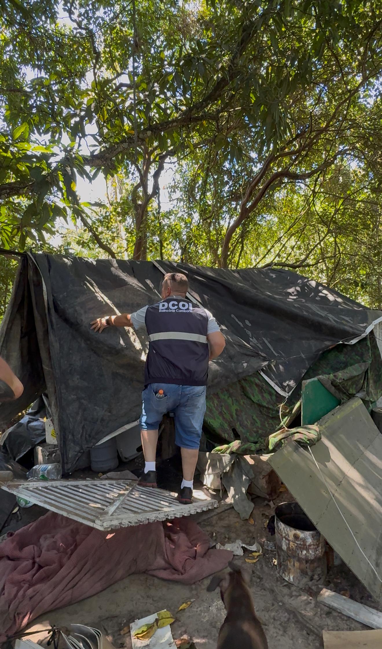 A fiscalização ocorreu após uma denúncia sobre a existência de moradias irregulares em uma área de mangue que forma uma ilha no meio do Rio Camboriú, entre os bairros Vila Real e Barra. O local possui acesso apenas por meio de embarcação.