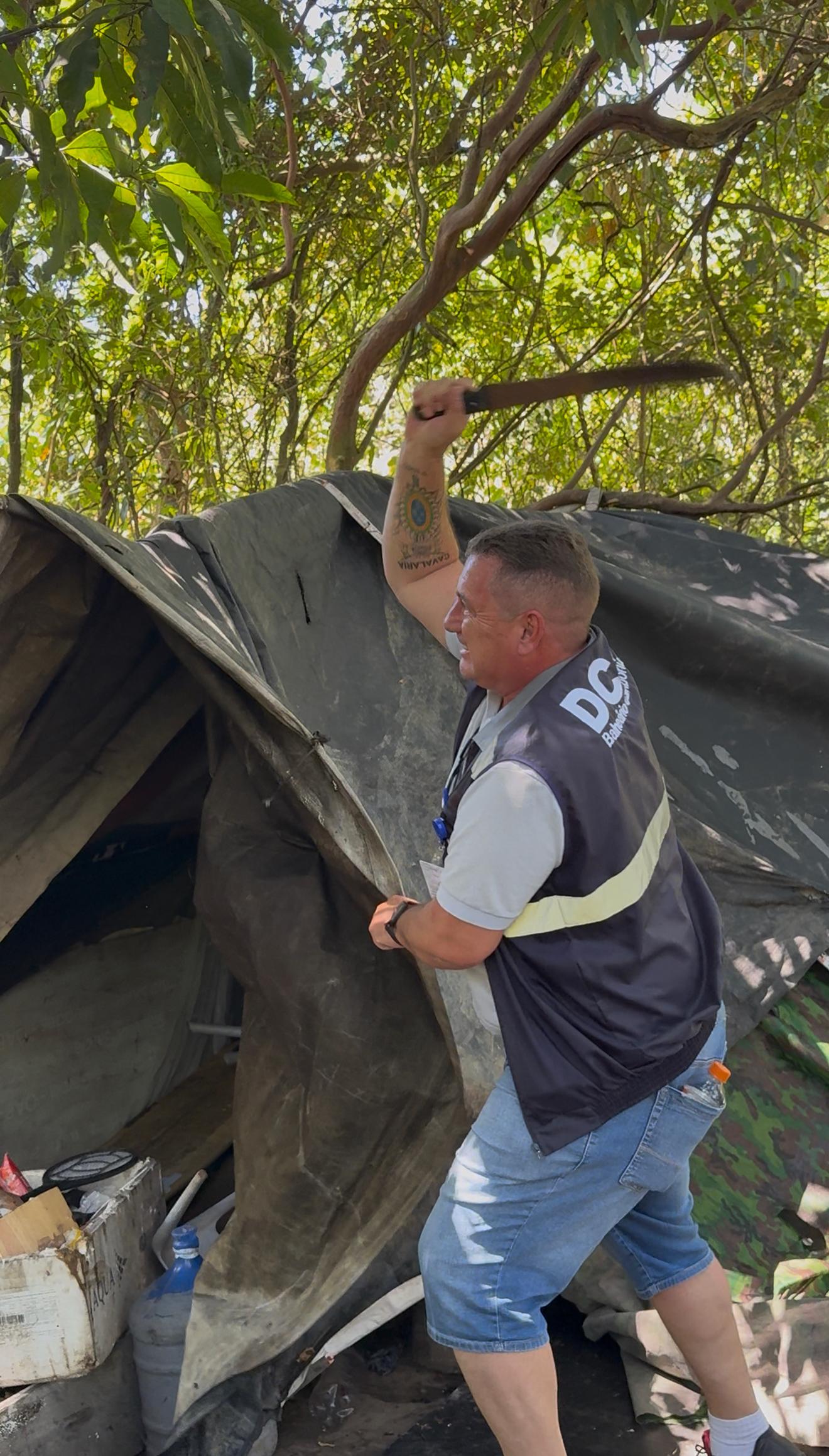Durante a operação, não foram encontradas pessoas no local, porém foram identificados dois barracos já construídos e um terceiro em fase de construção. Também foi localizado um cachorro abandonado, sem água e sem ração. O Departamento de Proteção Animal (DEPA) foi acionado para realizar o atendimento necessário e encaminhar o animal para um abrigo.