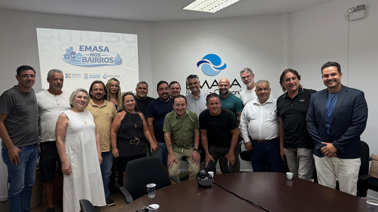Representantes da Empresa Municipal de Água e Saneamento (Emasa) de Balneário Camboriú estiveram reunidos na noite de quarta-feira (4) com presidentes de Associações de Moradores da cidade. O encontro, realizado na sede da autarquia, teve como objetivo fortalecer o diálogo direto com as lideranças comunitárias e apresentar os avanços conquistados ao longo do último ano. Participaram da reunião vice-prefeito, Nilson Probst, o diretor-presidente da autarquia, Auri Pavoni; o gerente comercial da Emasa, Thiago Pacheco e o diretor de Relações Comunitárias, Marcelo Damião.