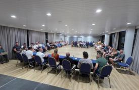 A situação do Rio Marambaia e as obras do Projeto Praia 100% Limpa foram temas de uma reunião nesta quinta-feira (5) entre o poder público e moradores do Bairro Pioneiros, quando foram apresentadas ações previstas para sua despoluição do canal. A reunião foi organizada pela Associação de Moradores e contou com a participação de cerca de 80 pessoas, além de autoridades como a prefeita Juliana Pavan e vereadores do município.