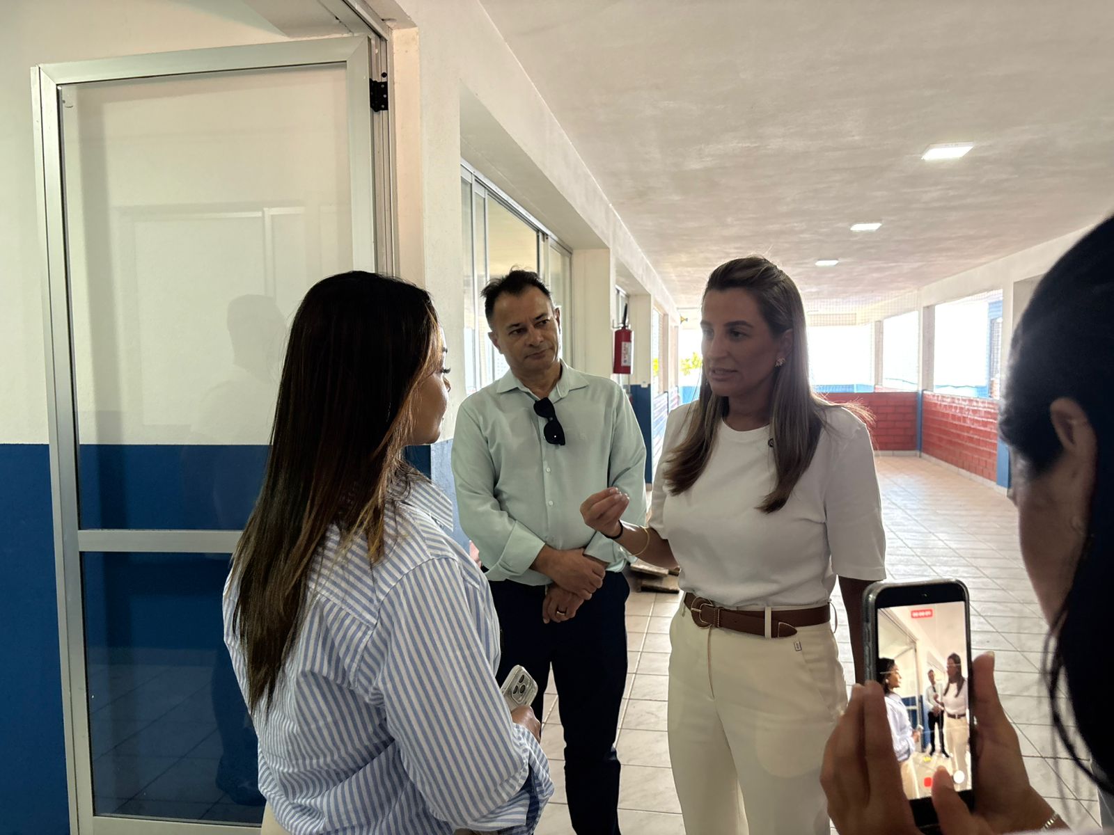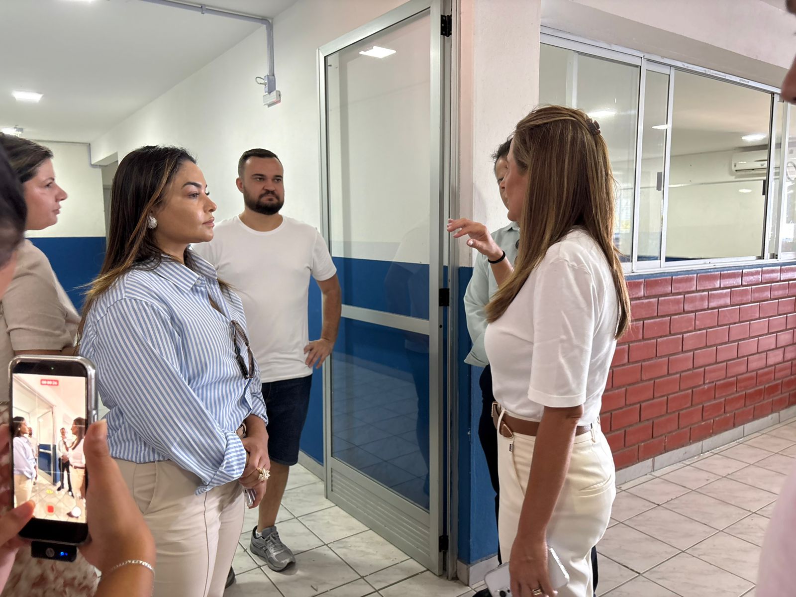 Na tarde desta sexta-feira (6), a prefeita esteve visitando ambas as unidades escolares com o secretário de Educação, Leandro Índio da Silva, representantes das empresas vencedoras da licitação e membros da Secretaria de Planejamento Urbano, que é responsável pela fiscalização do andamento das obras licitadas nos telhados e na parte elétrica. Na ocasião, houve cobrança para que as obras avancem o suficiente ao longo do final de semana e, dessa forma, as aulas possam iniciar.