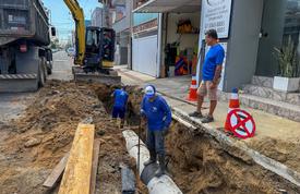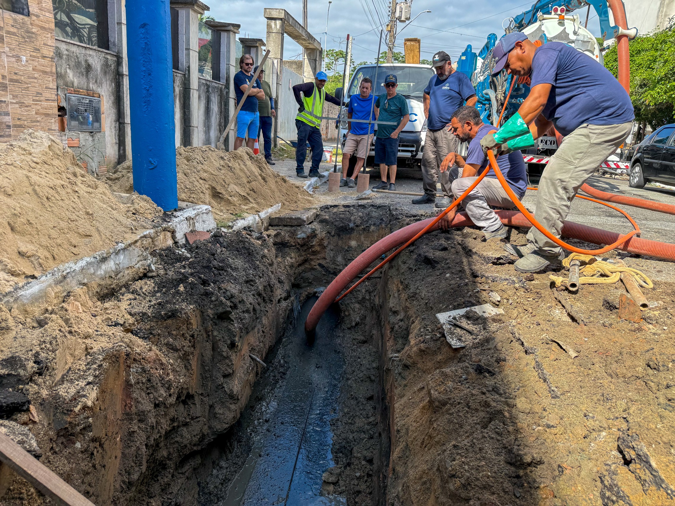 As equipes realizam a substituição de duas tubulações antigas, de 30 centímetros de diâmetro, instaladas uma em cada lado da via, junto às calçadas. No lugar, será implantada uma única tubulação de 40 centímetros de diâmetro, posicionada no eixo da rua.