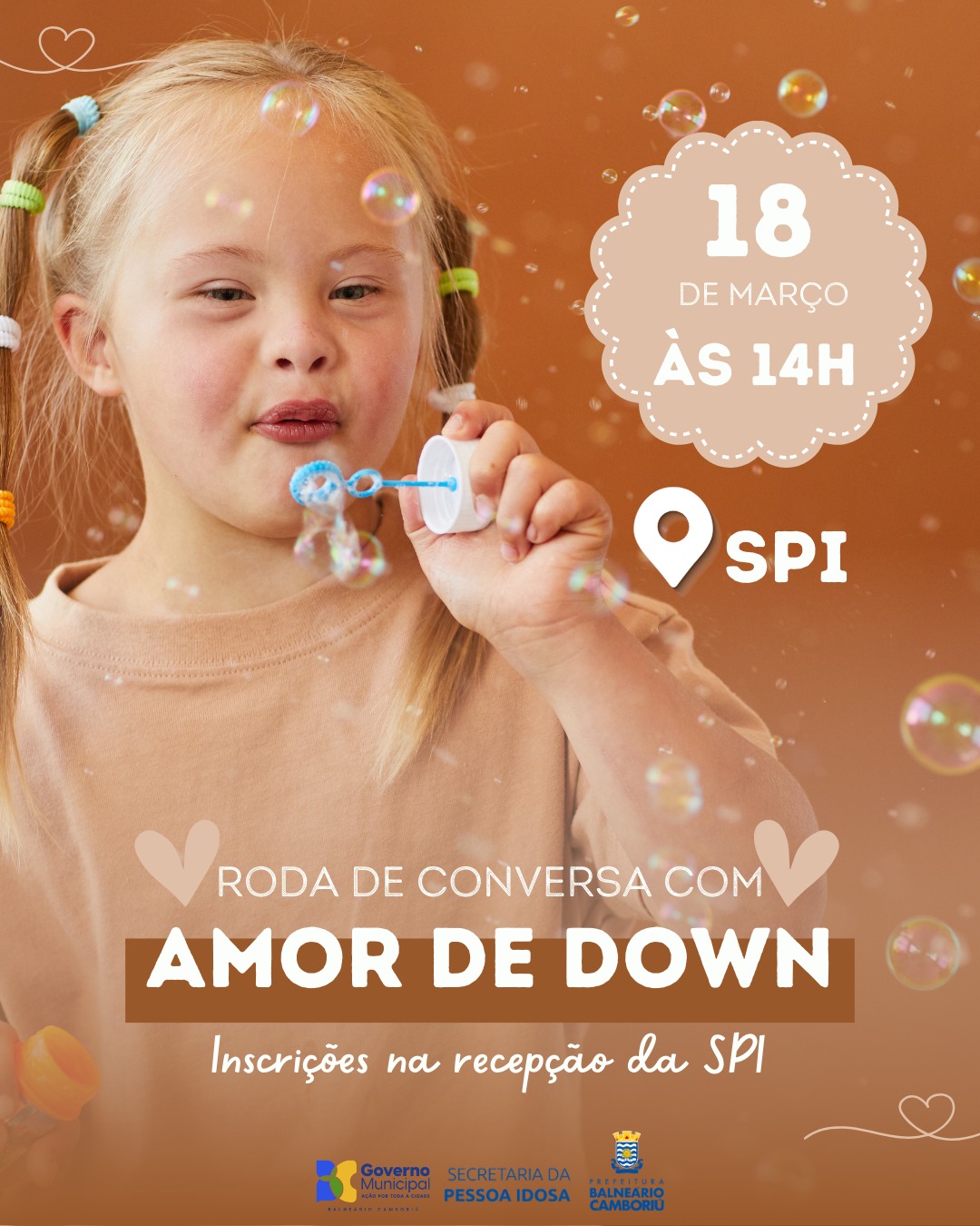 A Síndrome de Down, condição causada por uma alteração genética, será tema de uma roda de conversa com o público da terceira idade, na próxima quarta-feira (18), em uma parceria entre a Associação pra Down e a Prefeitura de Balneário Camboriú, por meio da Secretaria da Pessoa Idosa (SPI).