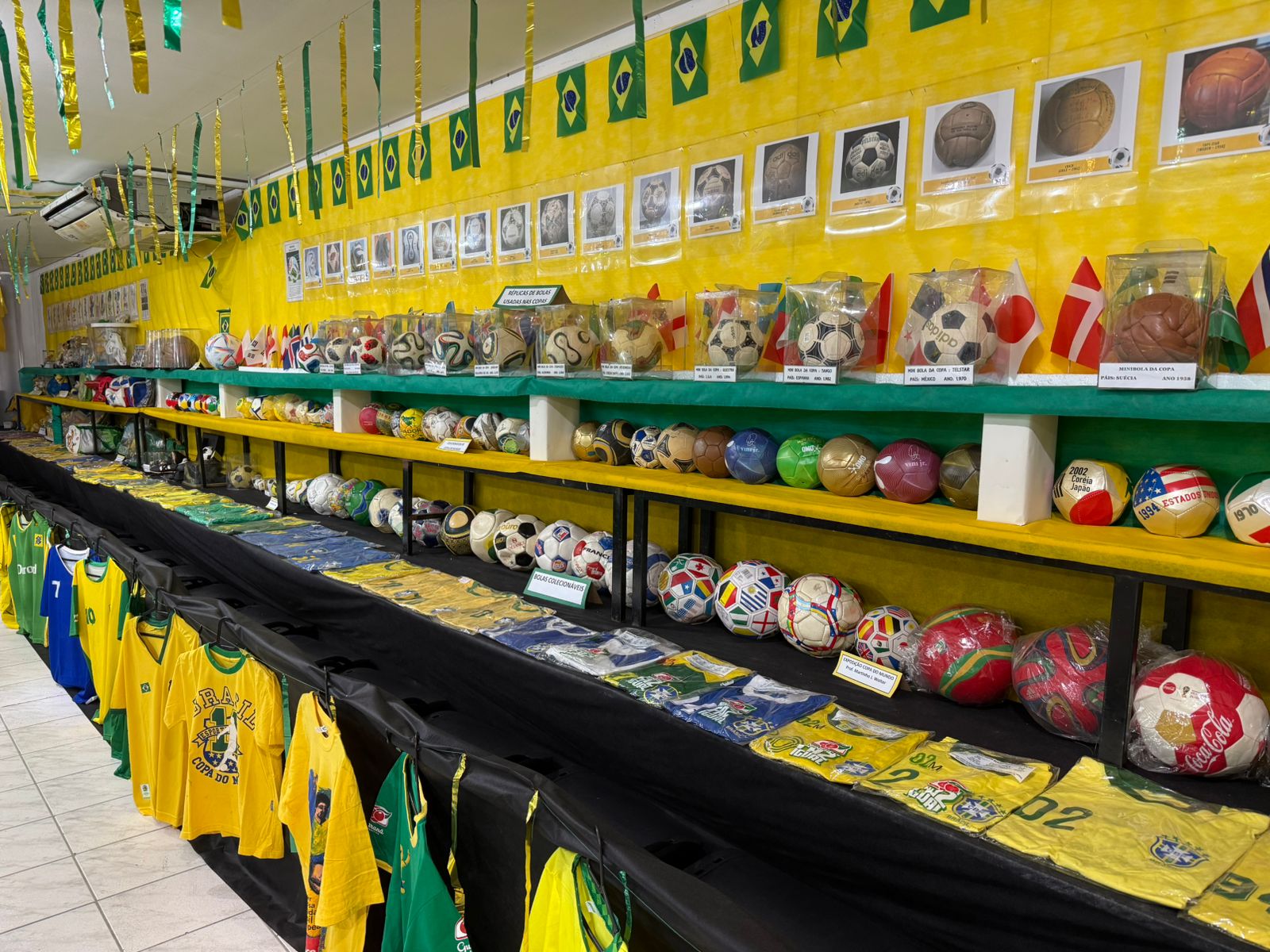 No Centro Educacional Municipal Dona Lili, uma das atrações foi a exposição sobre a Copa do Mundo, organizada pelo professor aposentado da rede municipal, Martinho Joel Wolter.